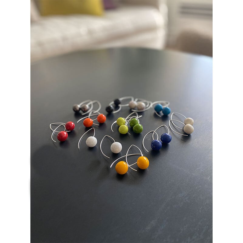 丸いパーツは味わいのある陶器製、金具部分はシルバー925を使用。